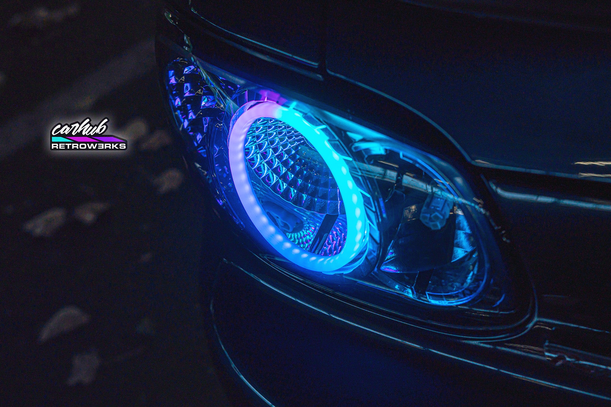(New Lenses) NB2 Mazda MX-5 Miata Dark RGB Halo Head Light Set